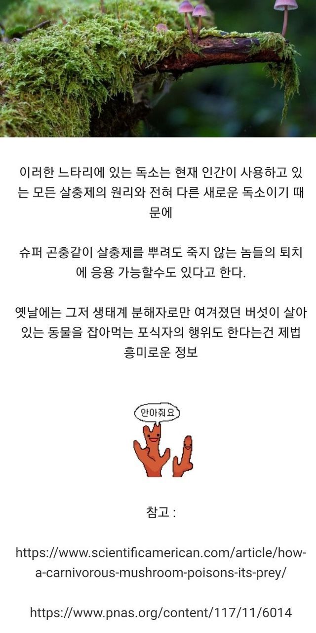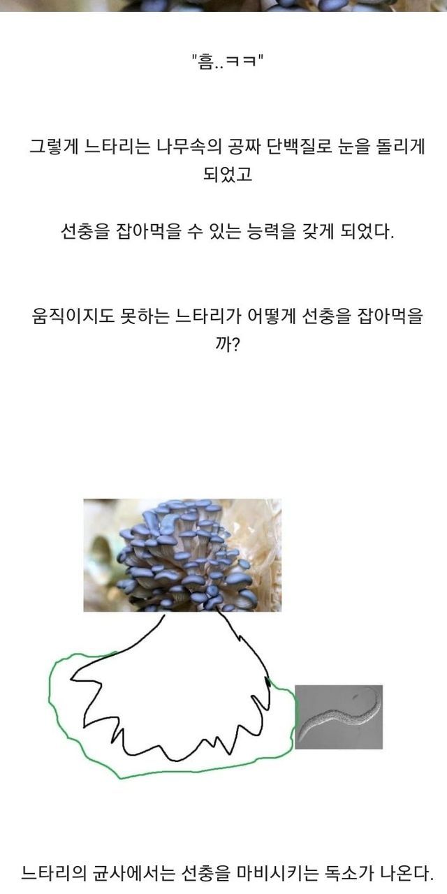 느타리 버섯이 사실 생물을 잡아먹는 ‘육식버섯’이다..