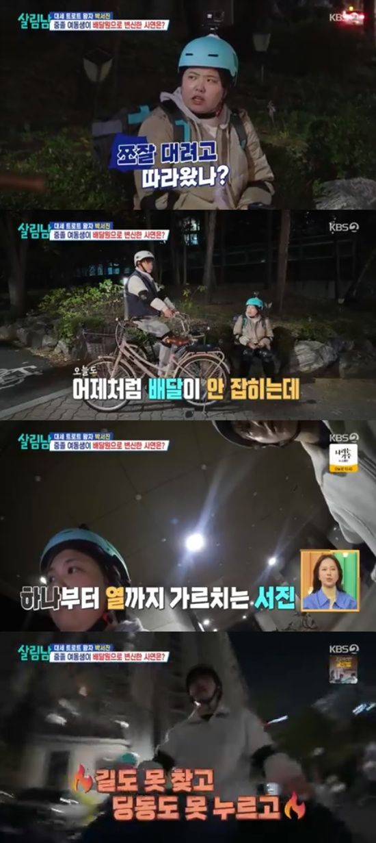 16일 방송된 KBS 2TV '살림하는 남자들 시즌2'에서는 박서진이 여동생 박효정의 배달 아르바이트에 따라 나서는 모습이 전파를 탔다.