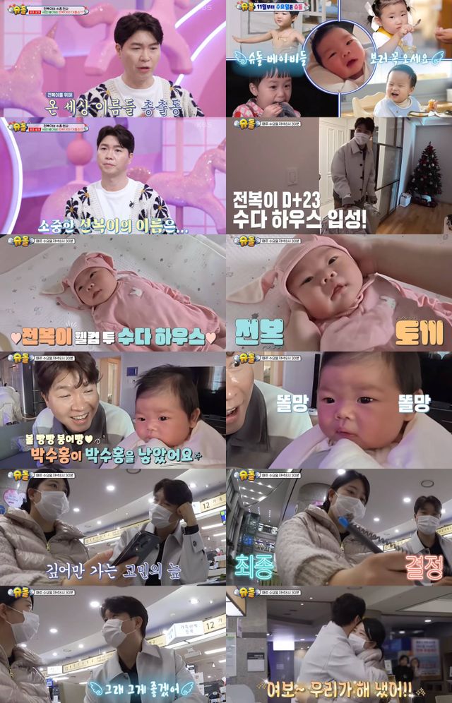 앞서 박수홍은 출생신고 당일 이름을 결정하지 못해 철회했던 바. 그는 "이름이 그 사람의 이미지이자"라며 고민하는 모습을 보였고, 김다예는 "작명앱만 5개 넘게 깔아놓고 계시고요"라며 힘겨워했다.