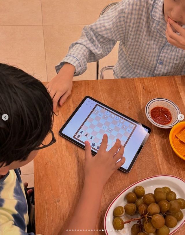 사진 속 박지윤은 편안한 옷차림을 하고 아이들과 여가 시간을 보냈다.