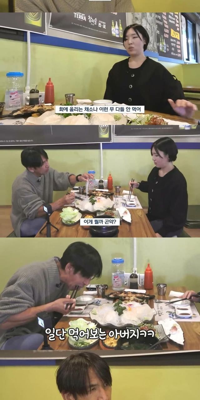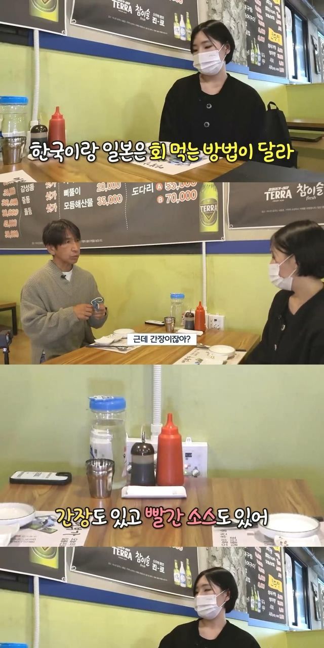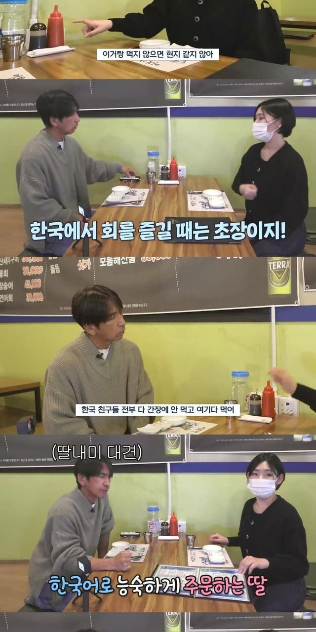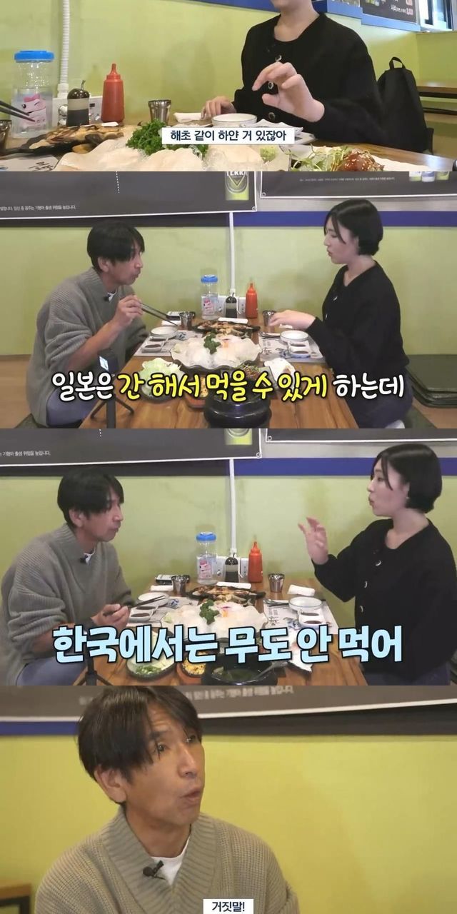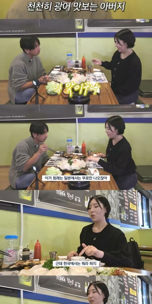 아빠에게 한국식 회 먹는 법을 알려주는 일본 유튜버.