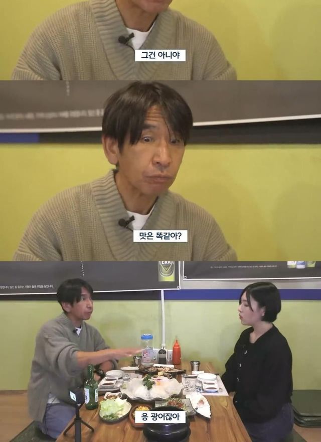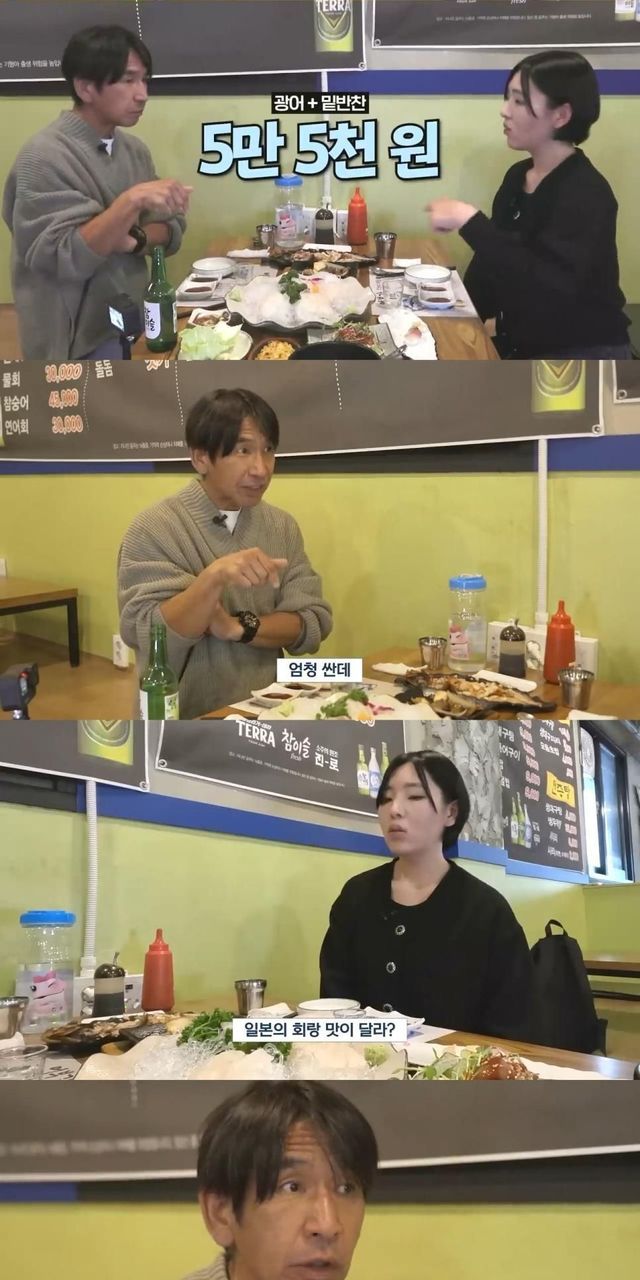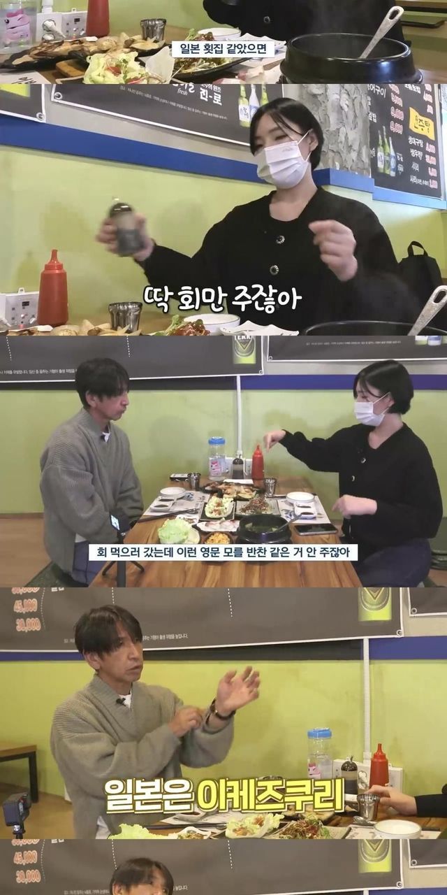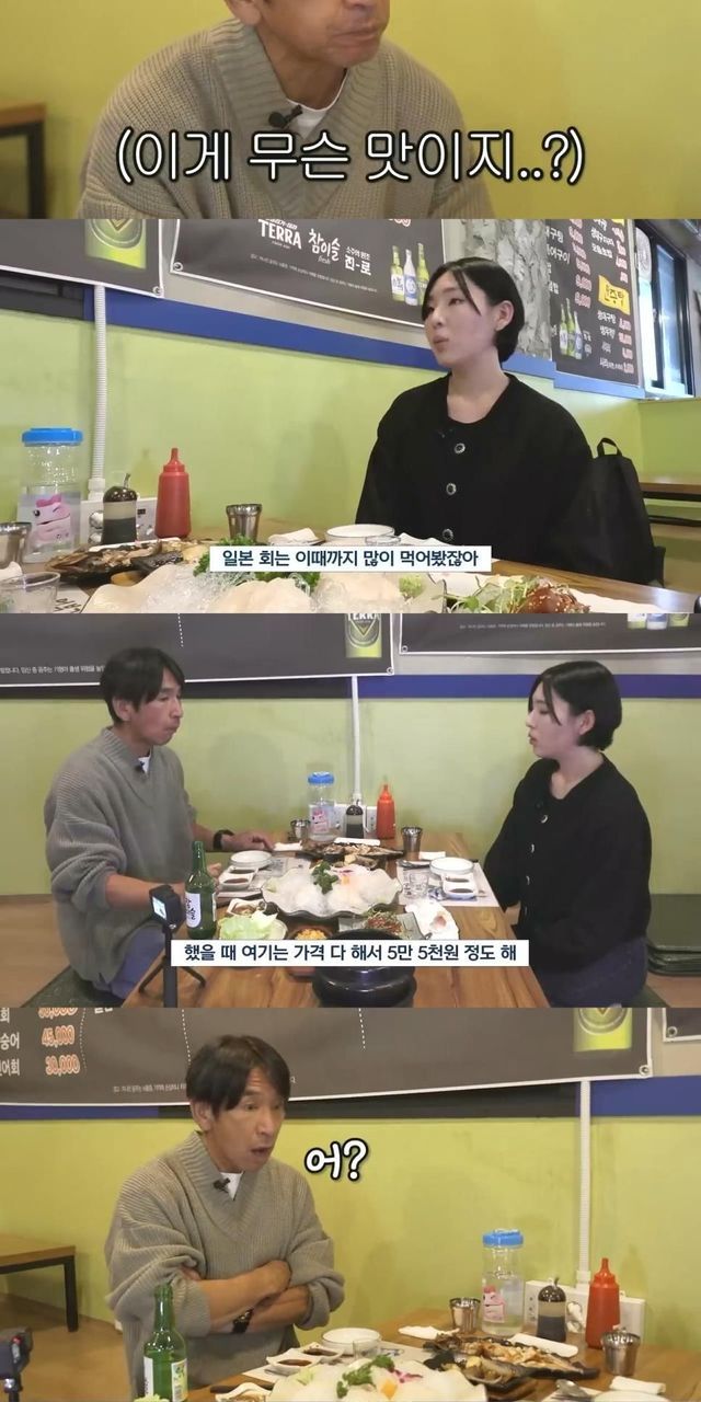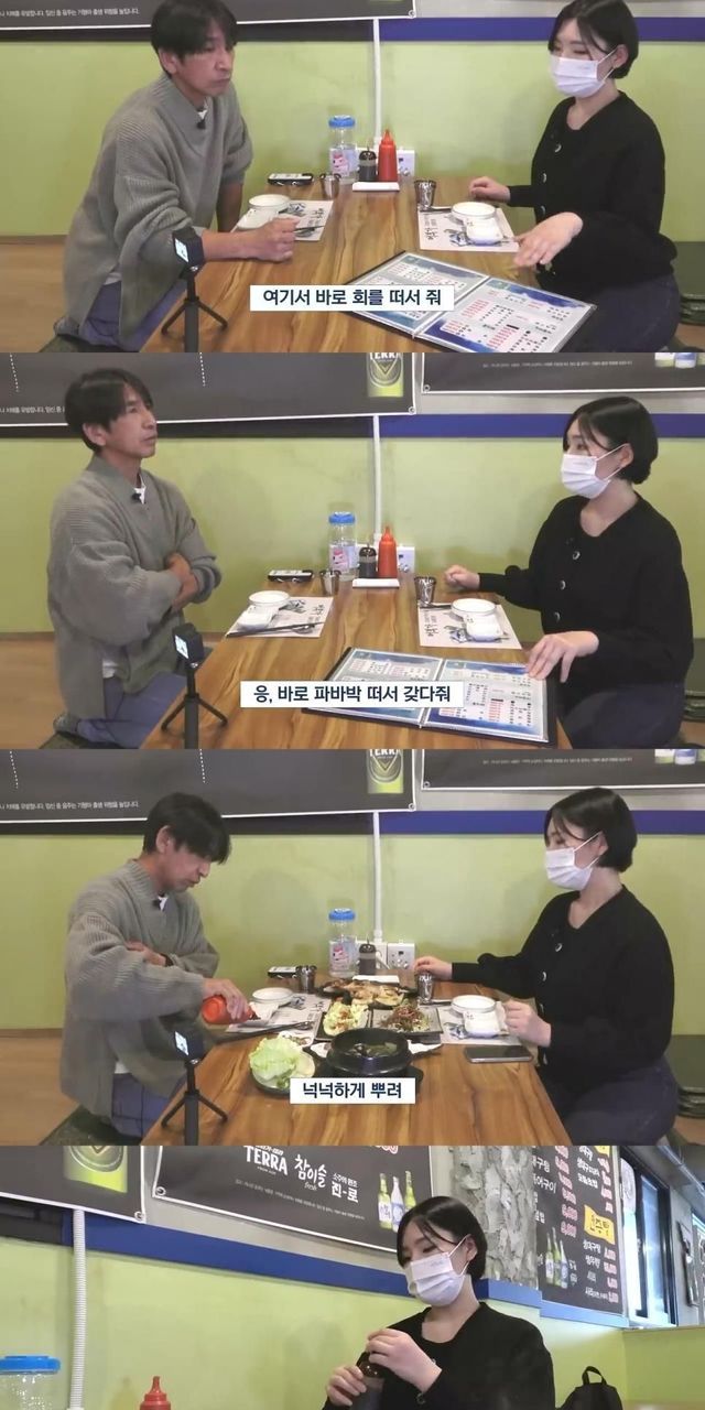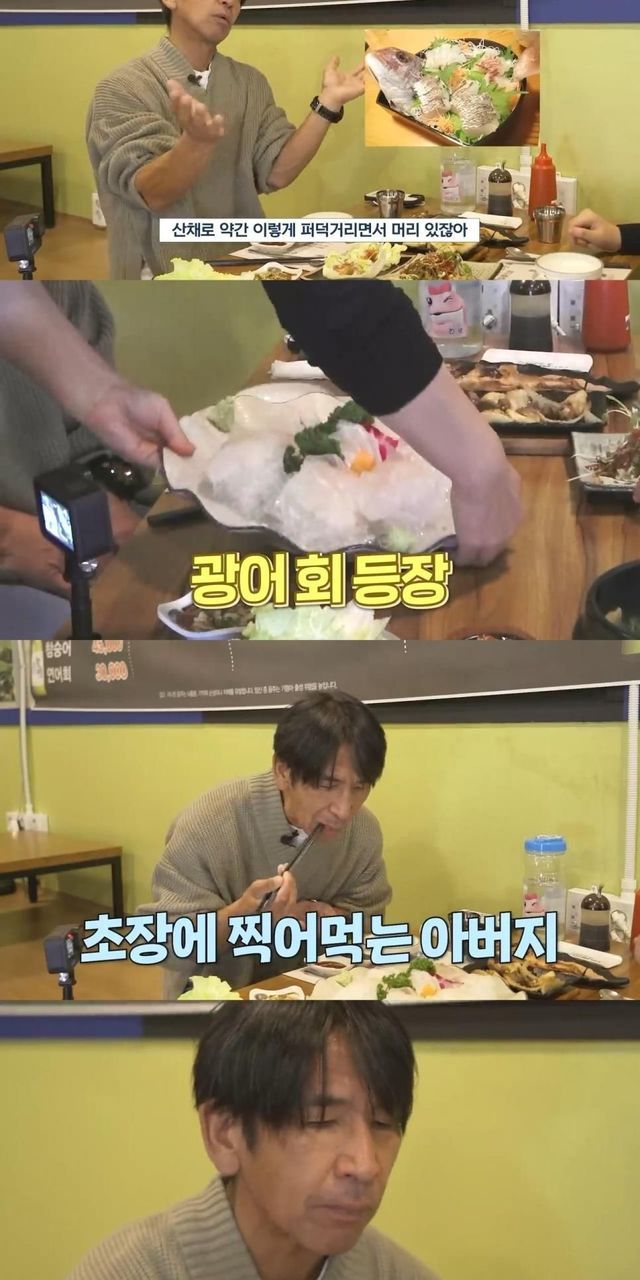 아빠에게 한국식 회 먹는 법을 알려주는 일본 유튜버.