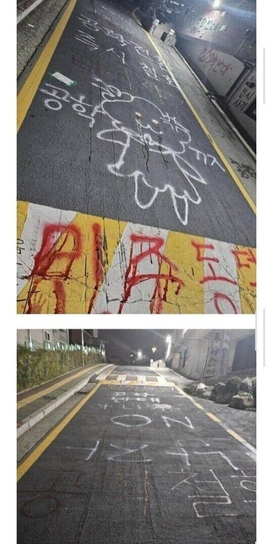 학교 건물, 도로 , 흉상 등 락카칠은 기본이고