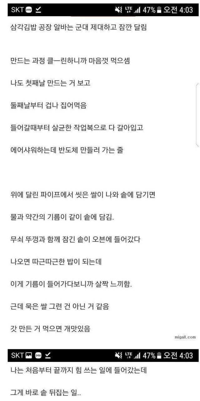 삼각김밥 공장에서 일한후기