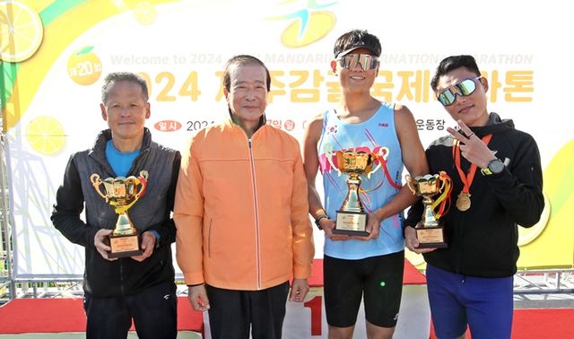 풀코스 남자부는 5위까지 상위권 입상자가 모두 2시30~40분 대로 골인하며 우승 경쟁이 치열했다. 우승은 일본 애플마라톤 우승자인 미우라 코지(2시간39분13초)가 감귤마라톤까지 제패하는 영예을 안았다. 2위는 코지보다 31초 늦게 결승선을 통과한 이창석(충남 천안, 2시간39분44초)이 올랐고, 3위는 김희복(경남 거제, 2시40분01초), 4위는 김대현(제주, 2시간40분12초), 5위는 조용현(서울, 2시간43분56초)이 가져갔다. 이창석은 애플마라톤 우승 자격으로 참가한 미우라 코지가 우승하면서 풀코스 우승자에게 주어지는 2025년 일본 애플마라톤 참가권을 획득하는 영광도 누렸다.