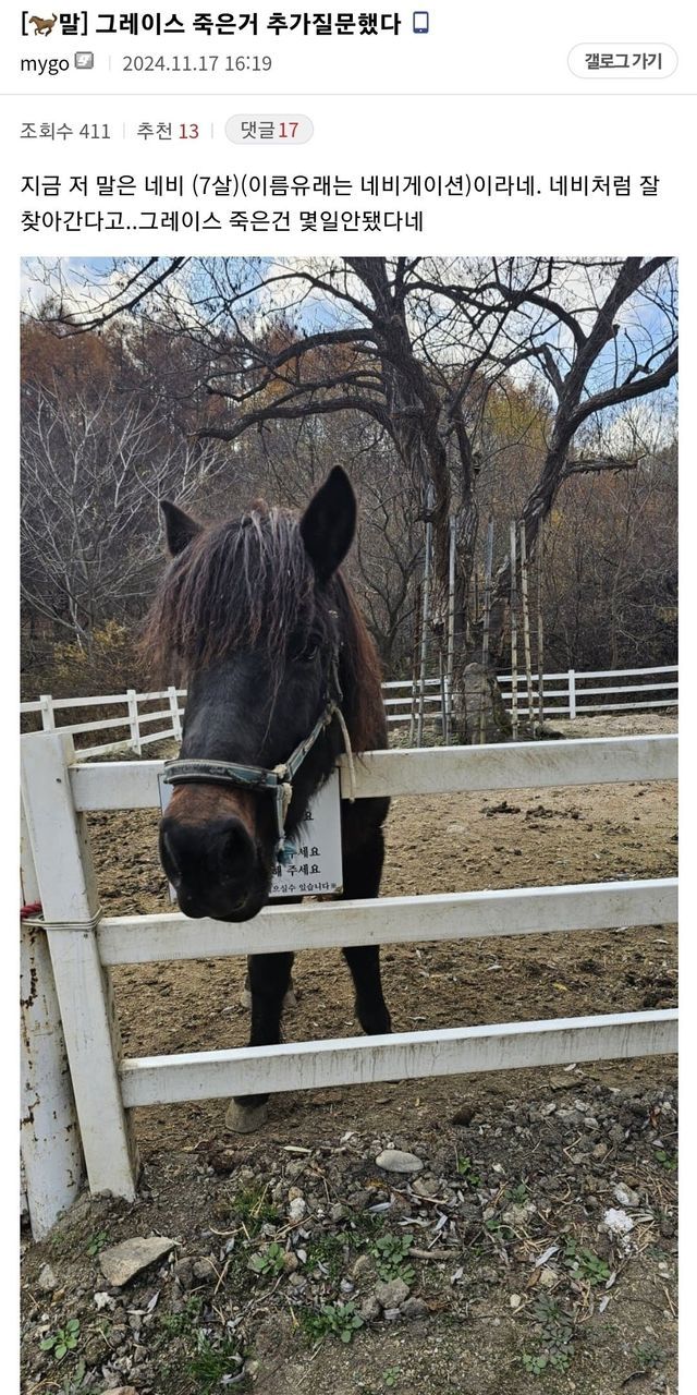 고 명마 그레이스의 명복을 빕니다!!!