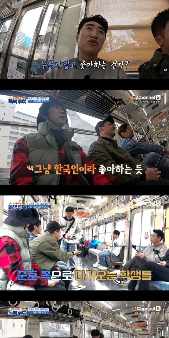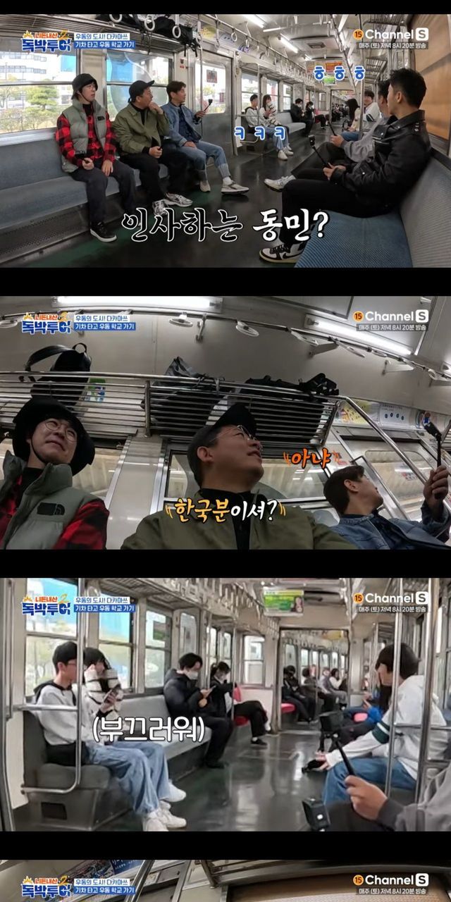 일본 지하철에서 인맥 자랑하는 개그맨들.
