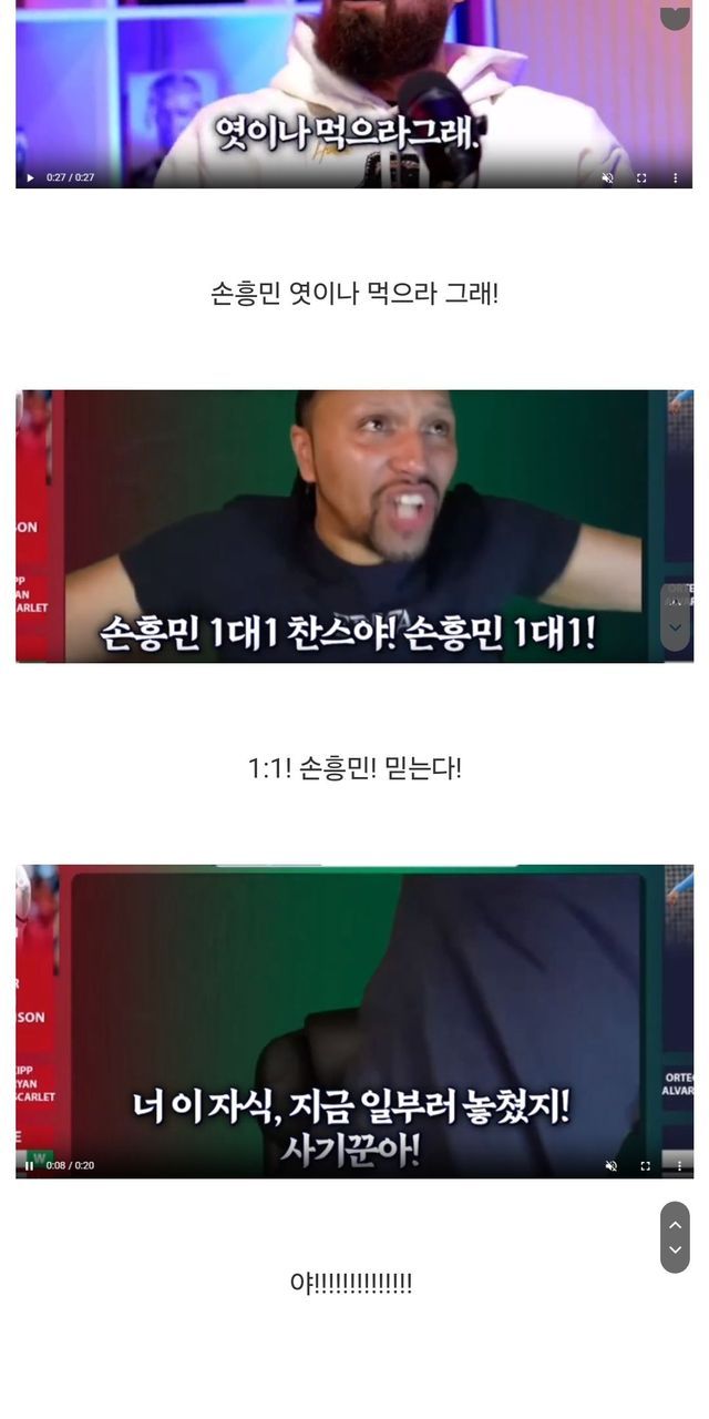 손흥민 1:1 에서 골 못넣자 욕하는 팬들.