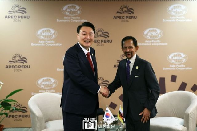 [파이낸셜경제=김예빈 기자] APEC 정상회의 참석을 위해 페루 리마를 방문 중인 윤석열 대통령은 11월 15일 '하싸날 볼키아(Hassanal Bolkiah)' 브루나이 국왕과 첫 정상회담을 갖고, 양국 관계 발전 방안 및 국제 정세에 대해 의견을 교환했다.