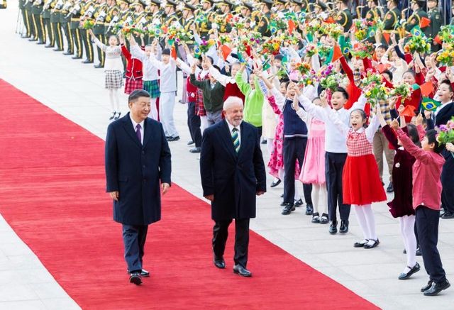 | ▲ 지난해 4월 14일 시진핑 중국 국가주석이 베이징 인민대회당에서 중국을 국빈 방문한 루이스 이나시우 룰라 다 시우바 브라질 대통령과 회담을 진행했다. 회담 전 시 주석은 인민대회당 동문 밖 광장에서 룰라 대통령을 위해 환영식을 거행했다. (사진/신화통신) |