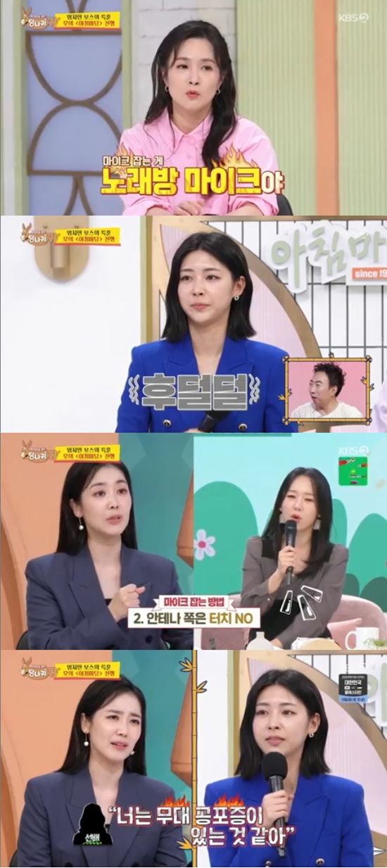 홍주연은 선배 아나운서들 앞에서 '아침마당' MC로 나서 'KBS 아나운서로 사는 법'을 주제로 진행을 시작했다.