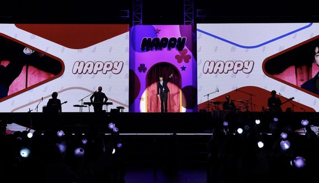 진은 "이틀 전 제 앨범이 발매됐다. 저의 첫 솔로 앨범 '해피'를 아미들에게 제대로 소개해보고 싶은 자리다. 아미들을 위해 만든 앨범인 만큼 여러분들을 행복하게 만들 각오 단단히 하고 나왔다. 느껴지시나요?"라고 질문을 남겨 객석의 열띤 호응을 이끌어냈다.