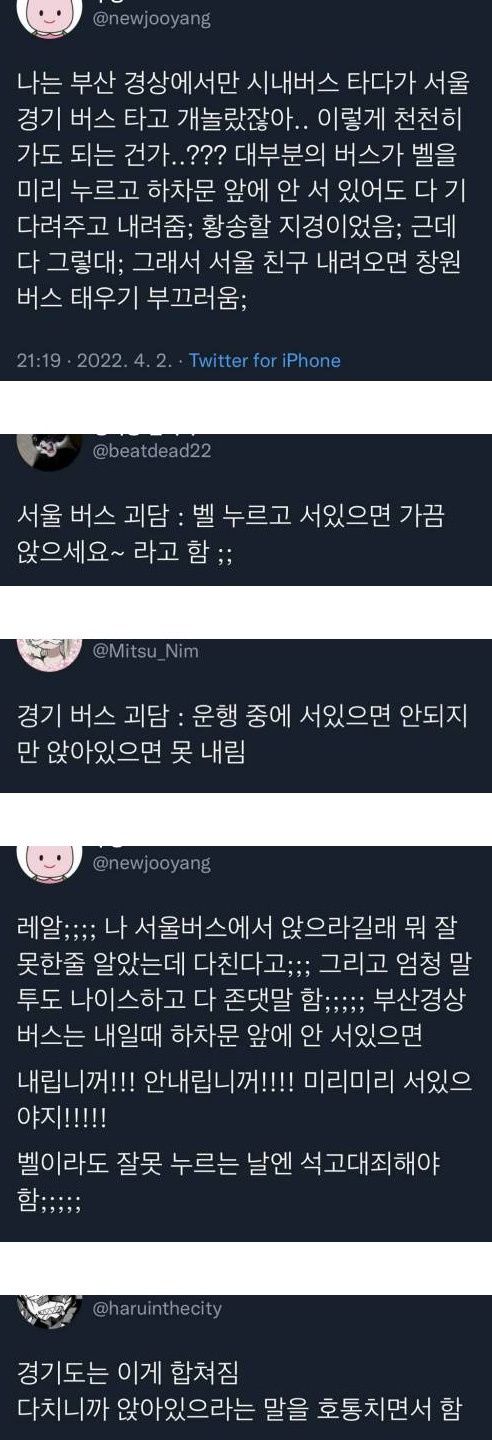 부산 경상에서만 버스 타다가 서울 경기 버스 타고 놀란 사람