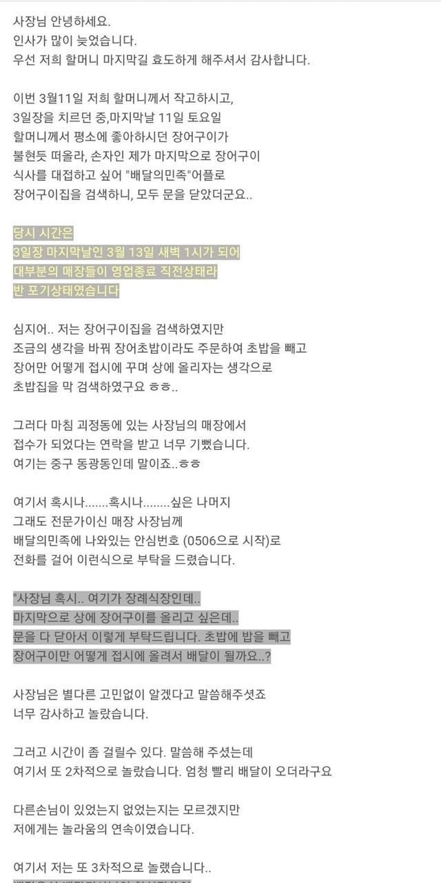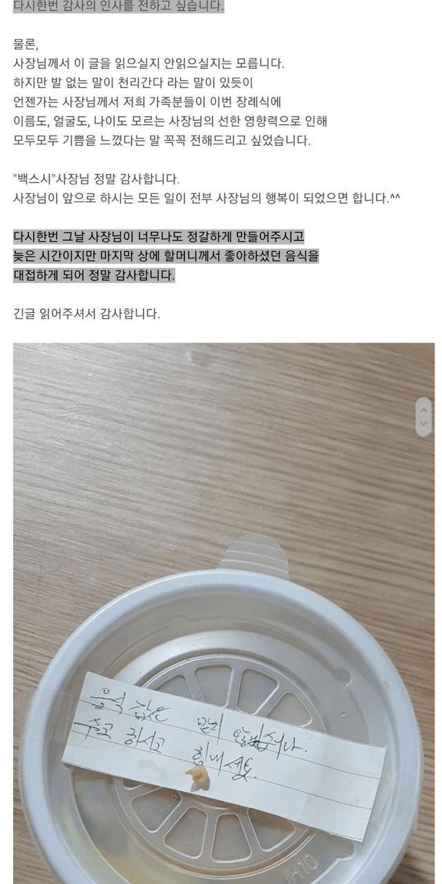 사장님, 저희 할머니 마지막 길 효도하게 해주셔서 감사합니다.
