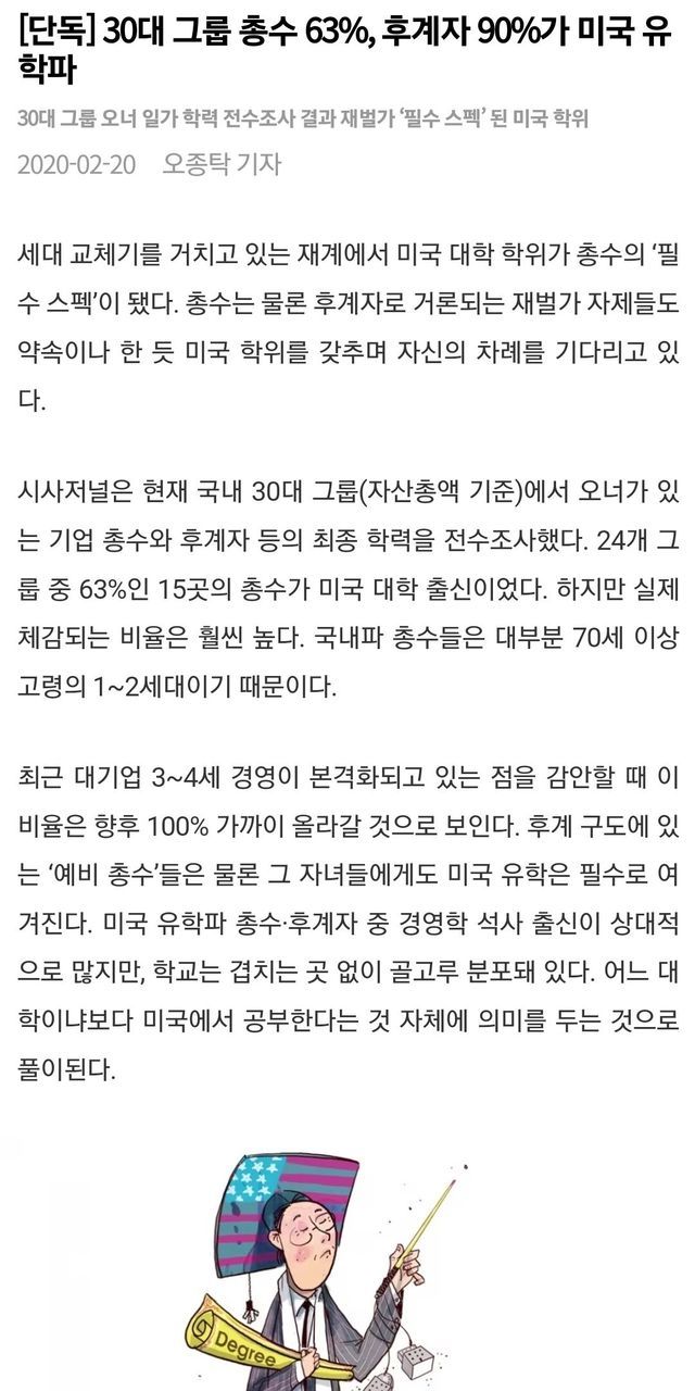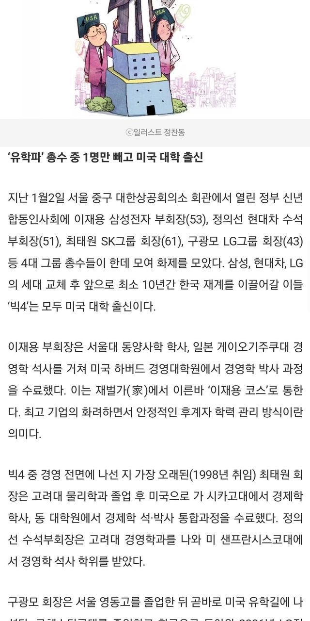 30대 재벌 총수 자녀들 출신 대학!!!