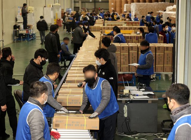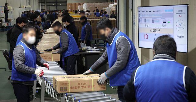 이들이 하는 일은 대학수학능력시험(수능) 시험지 포장 업무이다.