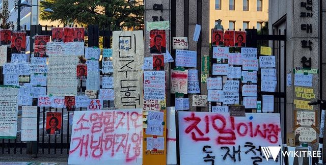 기념관에는 '소멸할지언정 개방하지 않는다'는 배너가 바람에 을씨년스럽게 흔들렸다. 첫 인상은 민주적인 학생 시위라기보다는 마치 중국 문화대혁명의 홍위병을 연상시켰다.