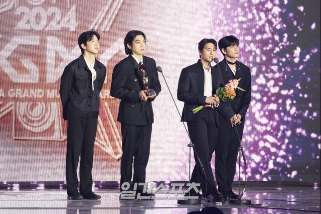 2024 그랜드 퍼포머 수상을 위해 무대에 오른 데이식스는 “이렇게 상을 많이 받아본 적이 있나 싶다. 3개나 받아서 너무 감사하다. 영광이다”라고 소감을 밝혔다.