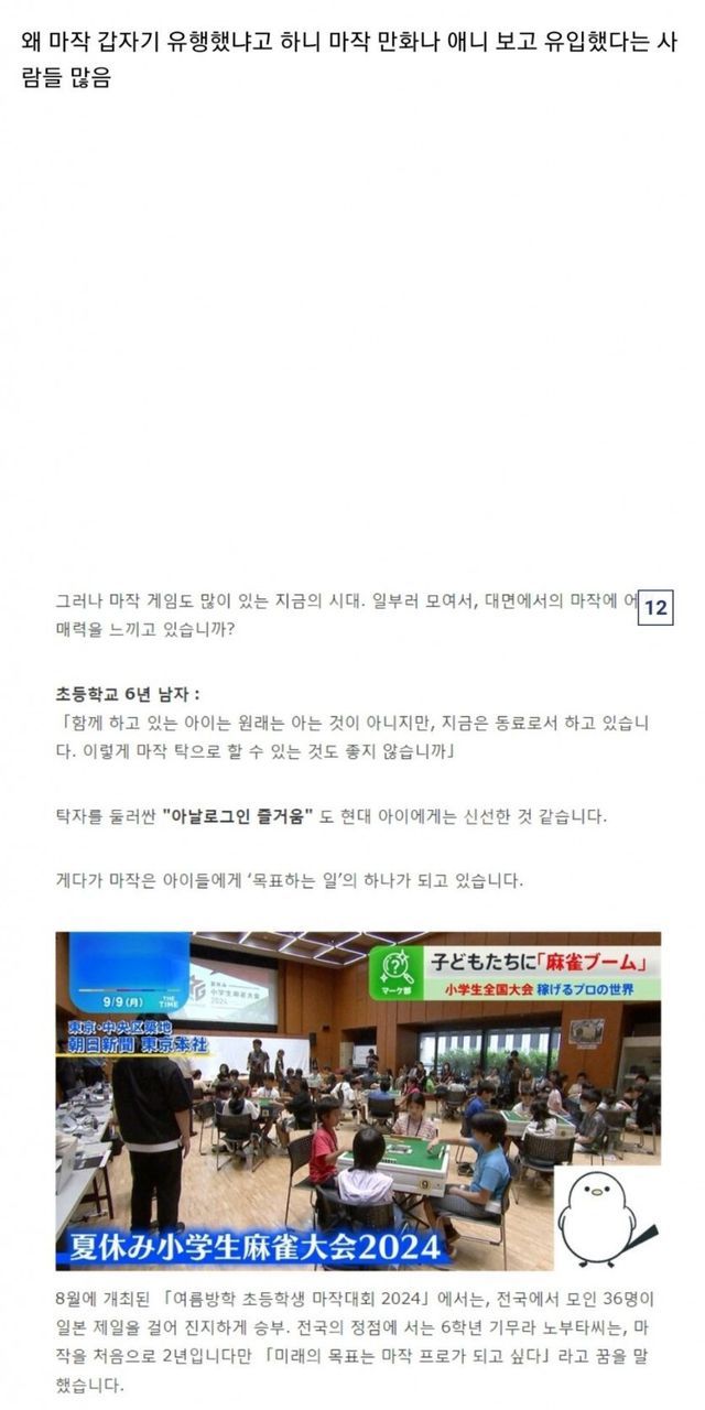 뜬금없이 일본 초딩들에게 인기폭발이라는 마작..