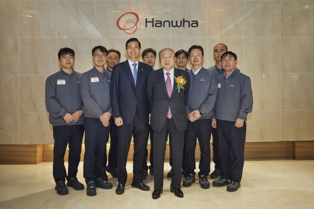 김승연 회장은 보은사업장 생산공실 현장을 두루 살피며 스마트 공정 기술 등을 직접 확인했다. 이 자리에서 한화 글로벌부문 노동조합은 조합 설립 후 63년간 협력적 노사관계가 이어지는 데 지원을 아끼지 않은 김승연 회장에게 감사패를 전달했다.