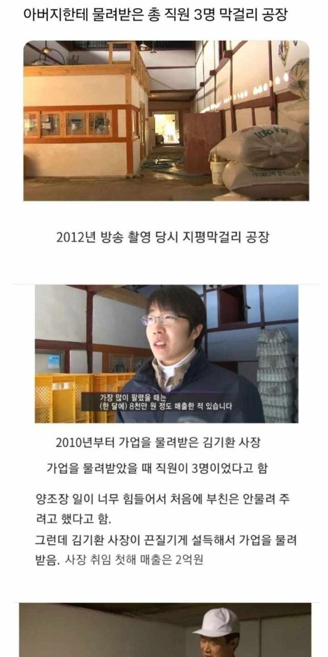 아버지에게 물려받은 직원 3명 막걸리 공장.