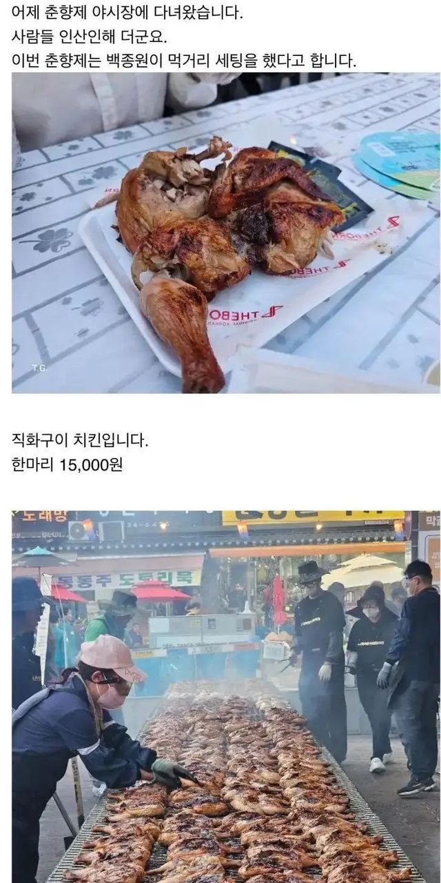 남원시청에서 바가지 이미지가 붙은 춘향제를 살리려고 이번에 백종원에게 컨설팅을 요청해서 야시장 음식들 가격들이 전부 조정 되었다 하네요..