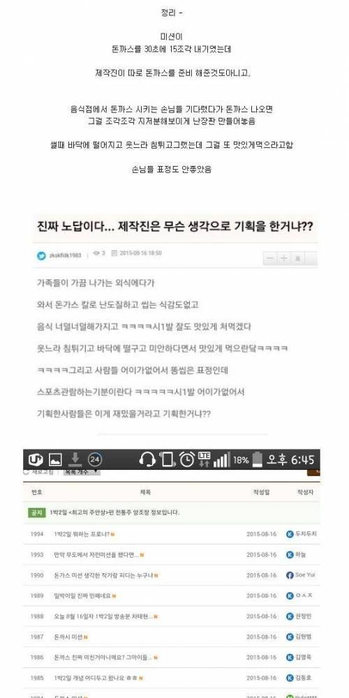 현재 여러곳에서 욕먹는 1박 2일 차태현 미션.jpg,,