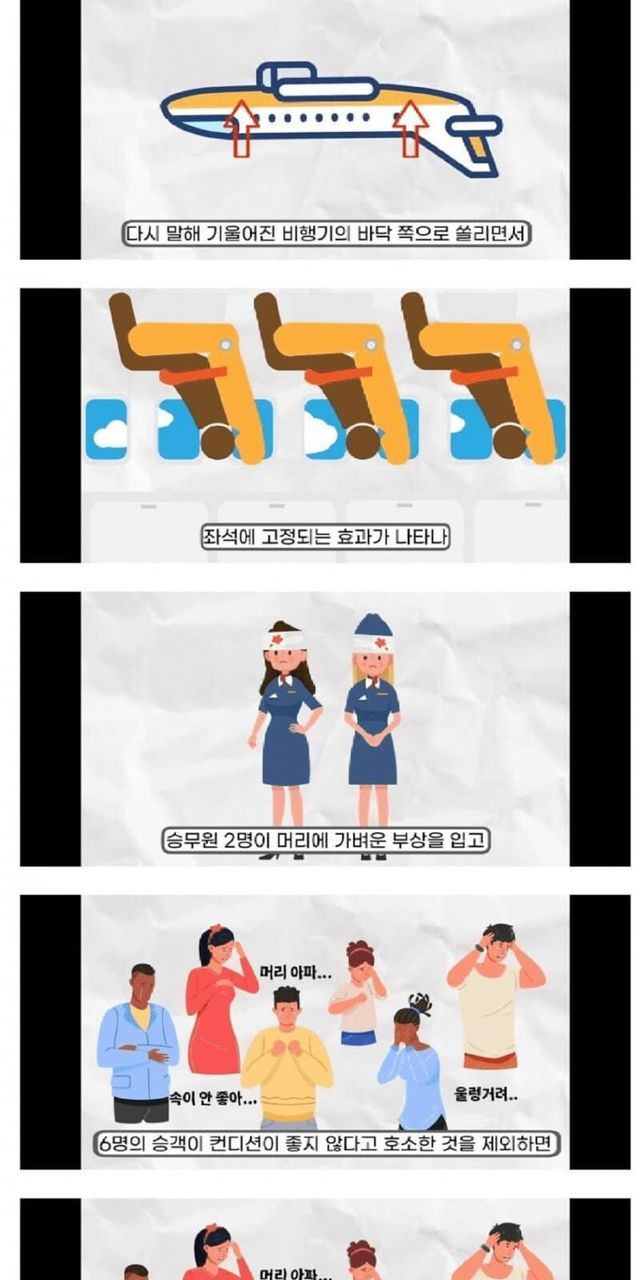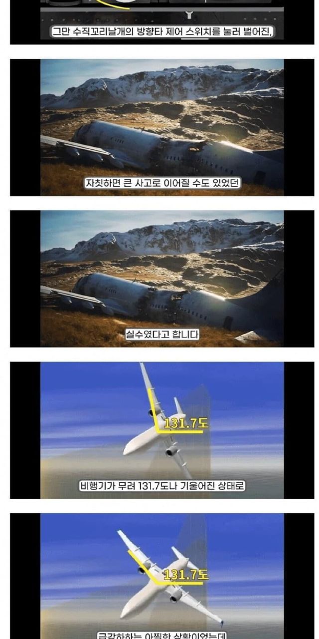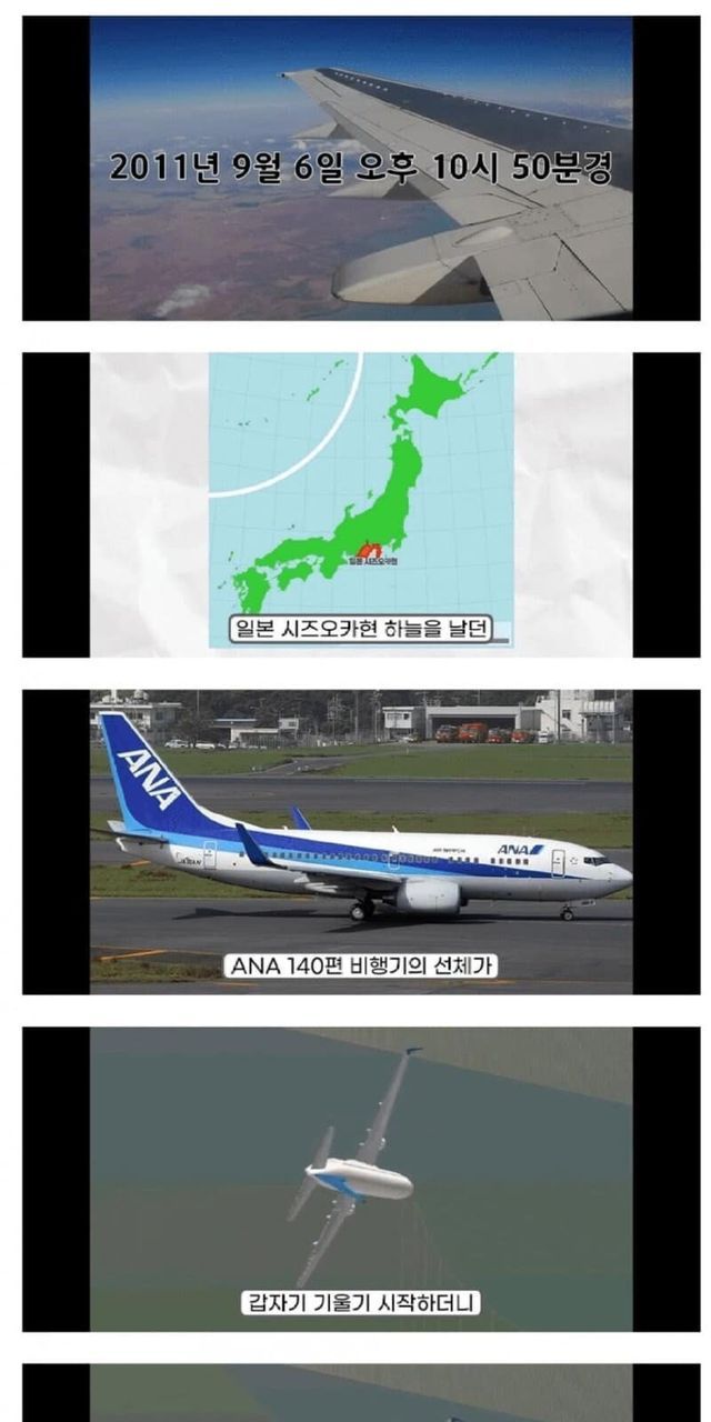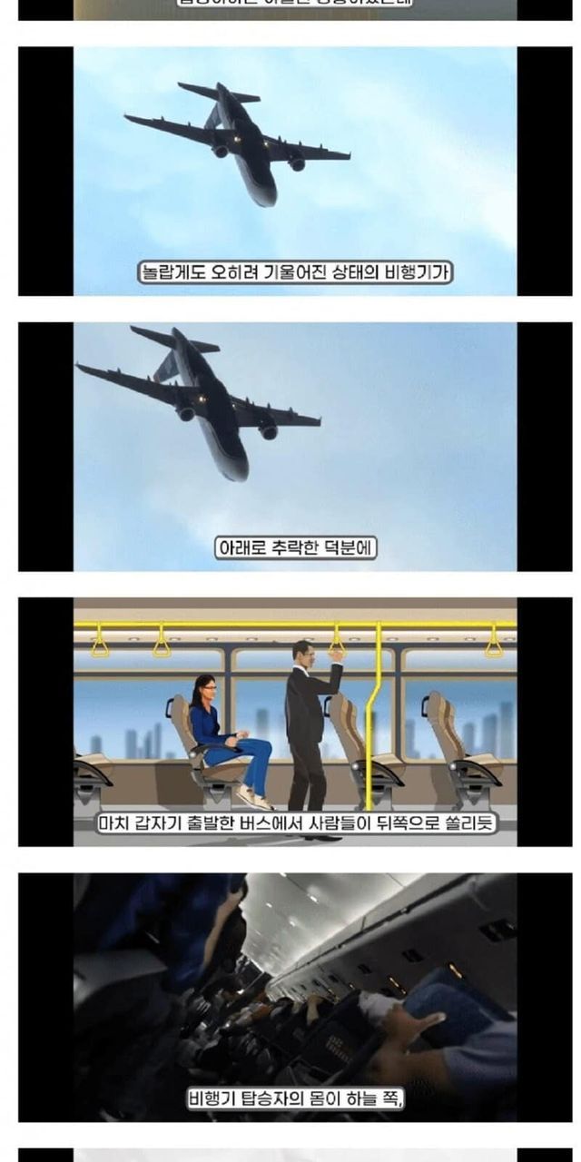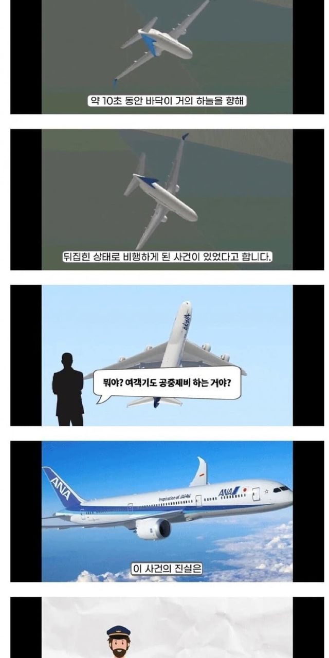 비행중 뒤집어져 곡예운전을 한 여객비행기