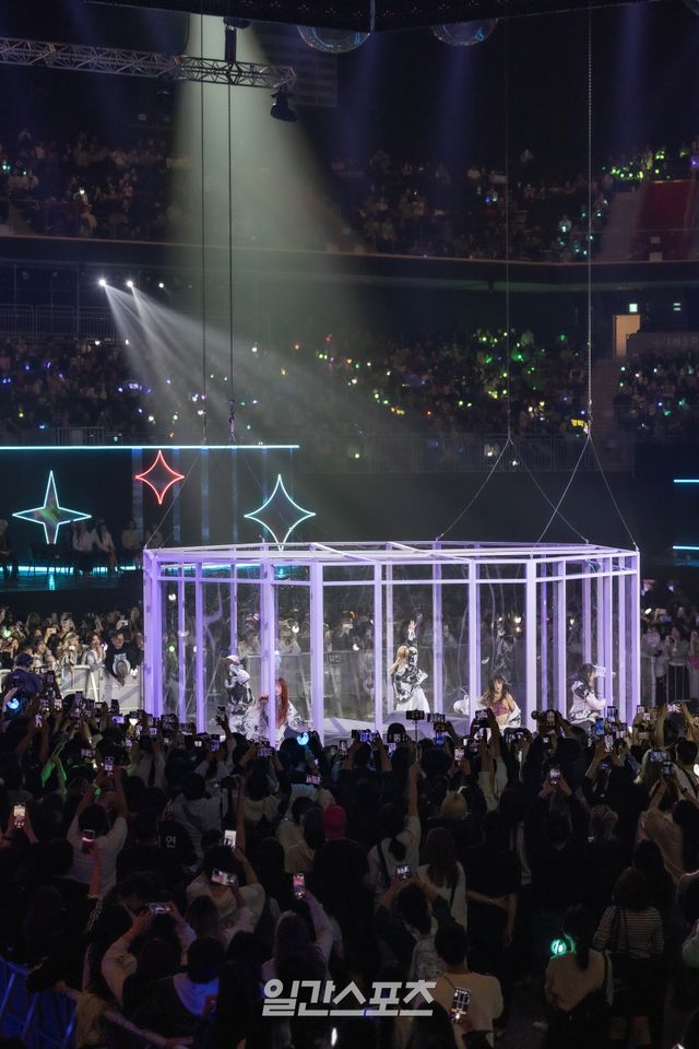 최고 영예에 해당하는 2024 그랜드 아티스트상을 수상한 그룹 뉴진스는 연보라색의 8각형 돔 안에서 ‘인트로 퍼포먼스’를 펼치며 공연의 포문을 열었다. 이후 뉴진스는 신비로운 분위기의 ‘라잇 나우’ 시작으로, 밴드 버전으로 변주한 ‘버블검’으로 분위기를 달궜다. 이어 중앙 스테이지로 옮겨온 뉴진스는 자신들을 상징하는 무지개빛 무대 위에서 히트곡 ‘하우 스위트’와 ‘슈퍼 내추럴’를 선보이며 꽉 찬 공연을 펼쳤다.