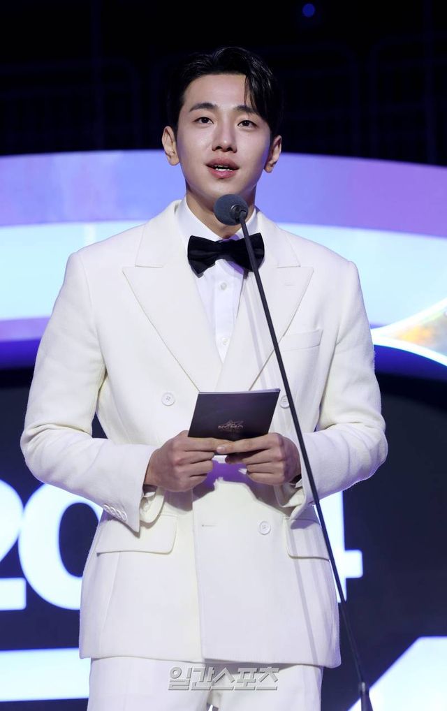 [2024 KGMA] 배우 이동휘가 17일 인천 중구 운서동 인스파이어 아레나에서 열린 '2024 코리아그랜드뮤직어워즈(KGMA)' 둘째날 송 데이에서 시상자로 나와 수상자 발표를 하고 있다 일간스포츠(이데일리M)가 주최하고 KGMA 조직위원회가 주관하는 '2024 KGMA'는 올해 창간 55주년을 맞은 일간스포츠가 대한민국 대중음악계에 새로운 패러다임을 제시하기 위해 새롭게 개최하는 시상식으로 16, 17일 이틀간 펼쳐졌다. 영종도(인천)=KGMA특별취재반 /2024.11.17/