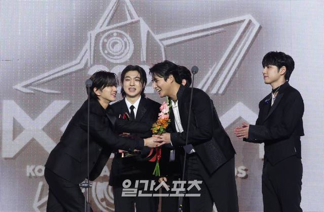 [2024 KGMA] 밴드그룹 데이식스가 17일 인천 중구 운서동 인스파이어 아레나에서 열린 '2024 코리아그랜드뮤직어워즈(KGMA)' 둘째날 송 데이에서 그랜드 퍼포머상을 수상했다. 일간스포츠(이데일리M)가 주최하고 KGMA 조직위원회가 주관하는 '2024 KGMA'는 올해 창간 55주년을 맞은 일간스포츠가 대한민국 대중음악계에 새로운 패러다임을 제시하기 위해 새롭게 개최하는 시상식으로 16, 17일 이틀간 펼쳐졌다. 영종도(인천)=KGMA특별취재반 /2024.11.17/