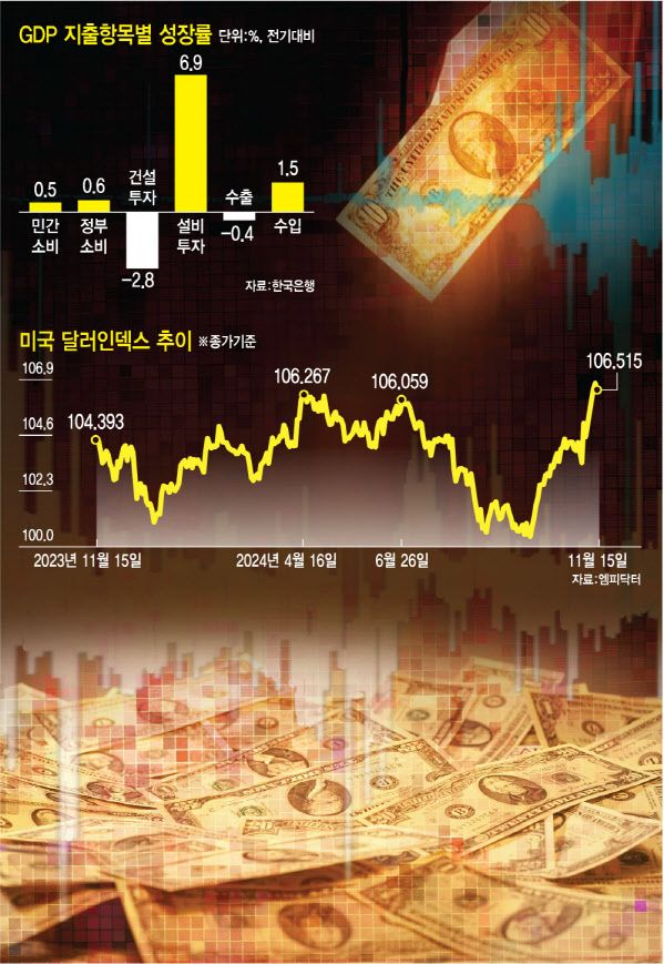 최근 환율 급등은 트럼프발 정책 리스크의 영향도 있지만 반도체 경기를 비롯한 국내 성장성에 대한 근본적인 우려 역시 크게 작용하고 있다는 것이다. 정부와 한은이 경기 관리에 실패한 것이 아니냐는 지적이 나오는 이유다.
