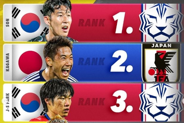 손흥민이 1위를 차지한 가운데 가가와가 2위, 박지성이 3위에 올랐다. 이어 일본 공격수 출신 혼다 게이스케가 4위, 일본 축구가 자랑하는 플레이메이커 나카타 히데도시가 5위에 올랐다.