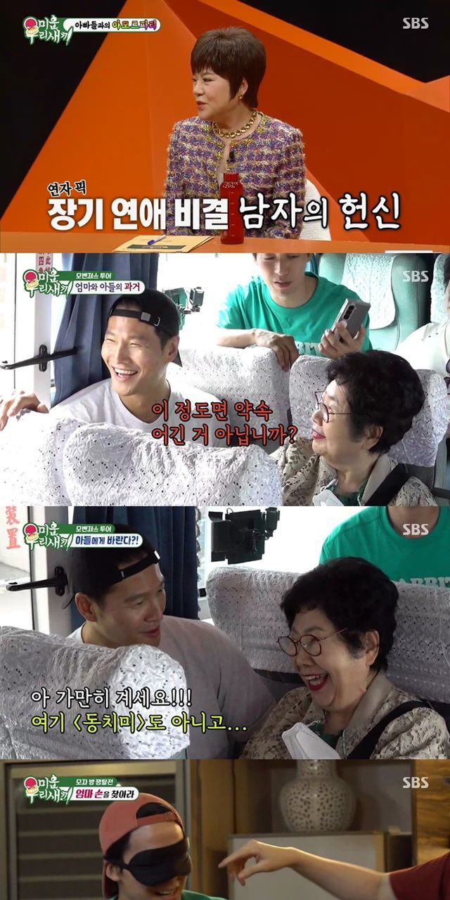 대만으로 떠난 미우새 母子들의 이야기가 이어졌다. 母子 퀴즈에 도전한 김종국은 종국 母가 미우새 출연을 결심한 이유가 PD가 여자를 소개해 주기로 했다는 조건 때문이었다는 것을 알고는 “이 정도면 제작진이 공수표를 날렸다”라며 씁쓸해했다. 김희철은 “그럼PD님이랑 결혼해라, 동엽이 형 잘 사시지 않냐”라고 거들면서 “근데 나는 PD가 싫다고 할 것 같다”라며 셀프 디스를 해 웃음을 자아냈다.