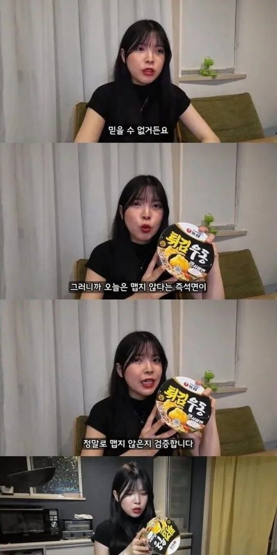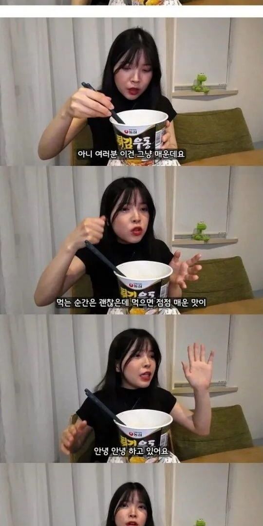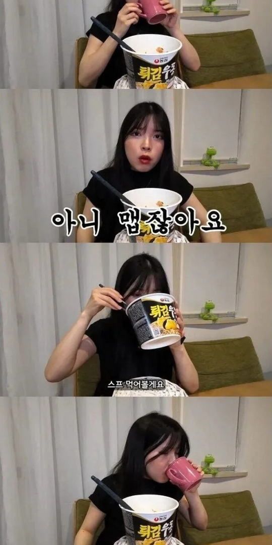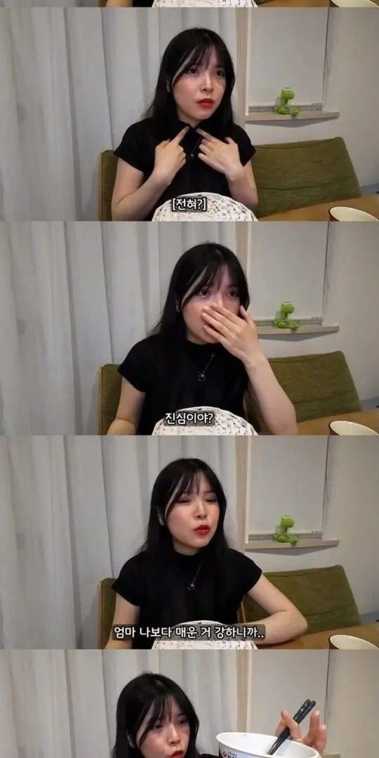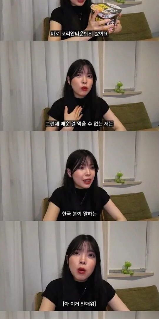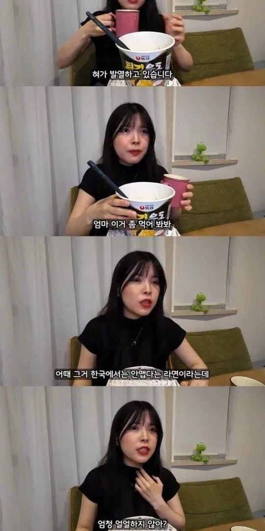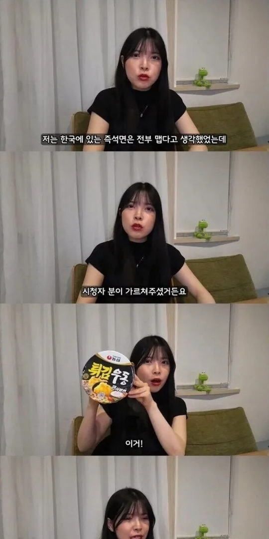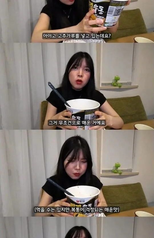 튀김우동이 맵지 않다는 한국사람들의 추천을 보고 시식해본 일본사람