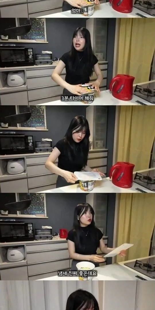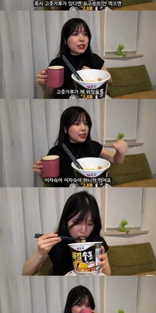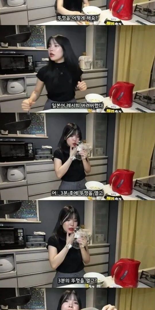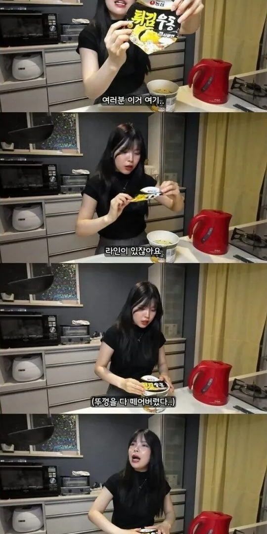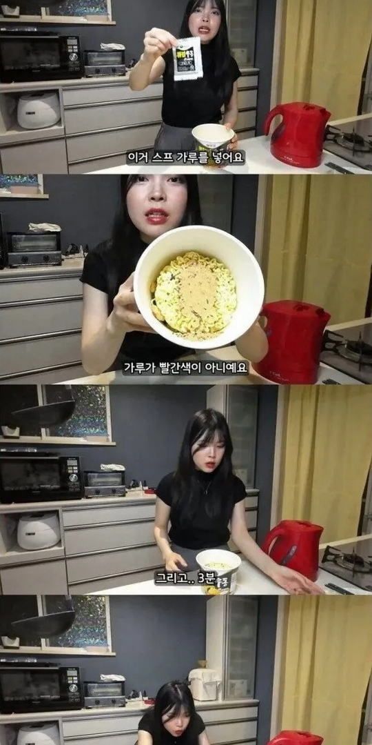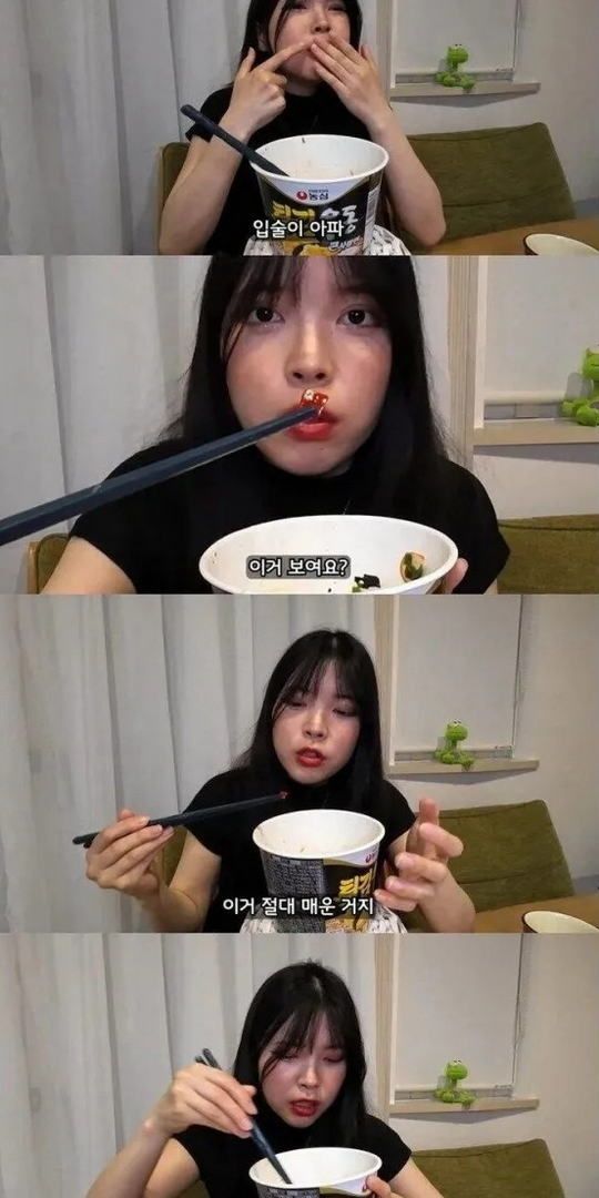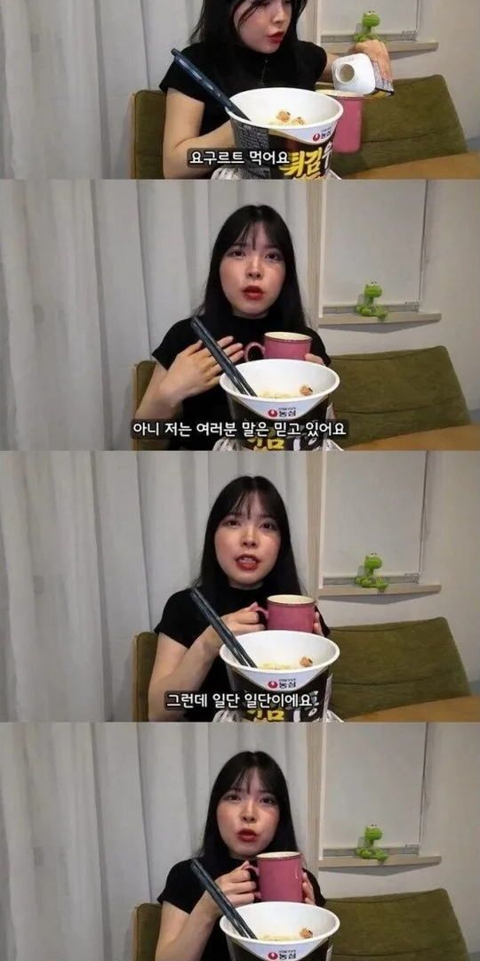 튀김우동이 맵지 않다는 한국사람들의 추천을 보고 시식해본 일본사람
