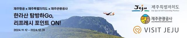 [한라일보] 제주관광공사는 제주항공과 12월 31일까지 온라인 채널을 통해 제주를 찾는 내국인 관광객을 대상으로 '한라산 탐방하GO, 리프레시 포인트ON' 이벤트를 진행하고 있다고 18일 밝혔다.