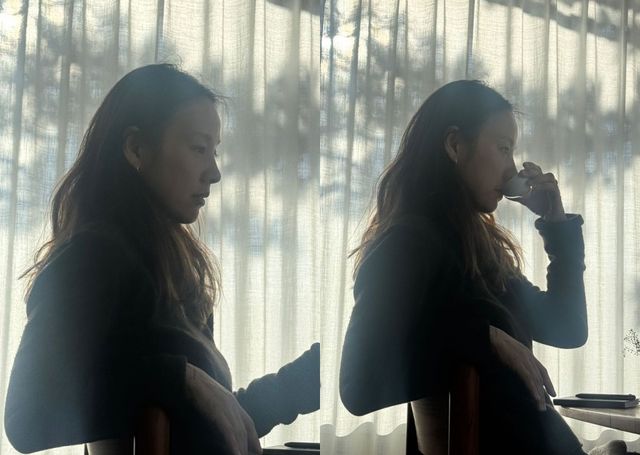 이효리가 창가에서 차 한잔과 함께 여유로운 시간을 가졌다.