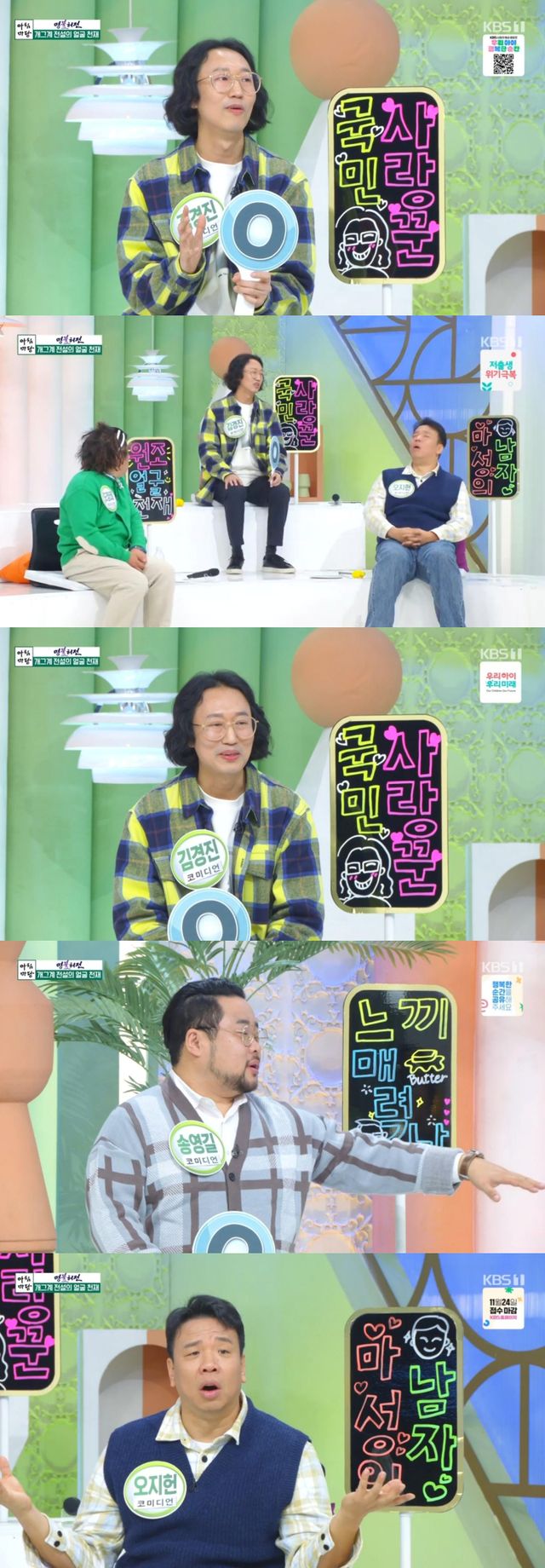 18일 방송된 KBS 1TV '아침마당'의 '명불허전' 코너에는 개그계 전설의 얼굴 천재들 오정태, 김경진, 오지헌, 송영길, 박휘순이 출연했다.