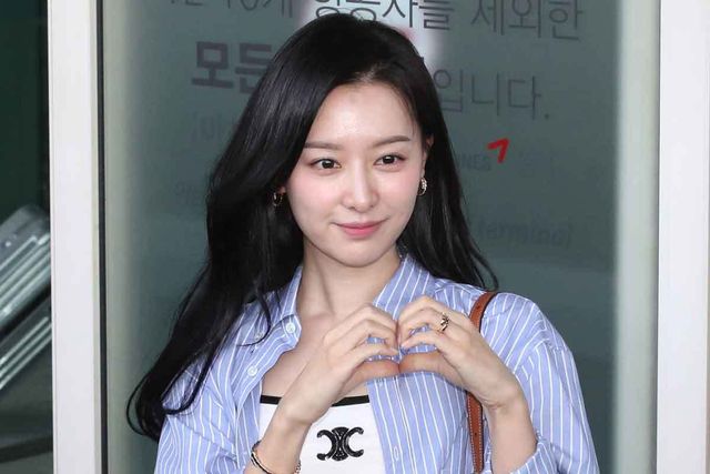 tvN 드라마 '눈물의 여왕'의 주역 김지원. 배우 김지원이 5월 12일 오후 싱가포르로 출국하기 위해 인천국제공항에 도착, 포즈를 취하고 있다. / 뉴스1