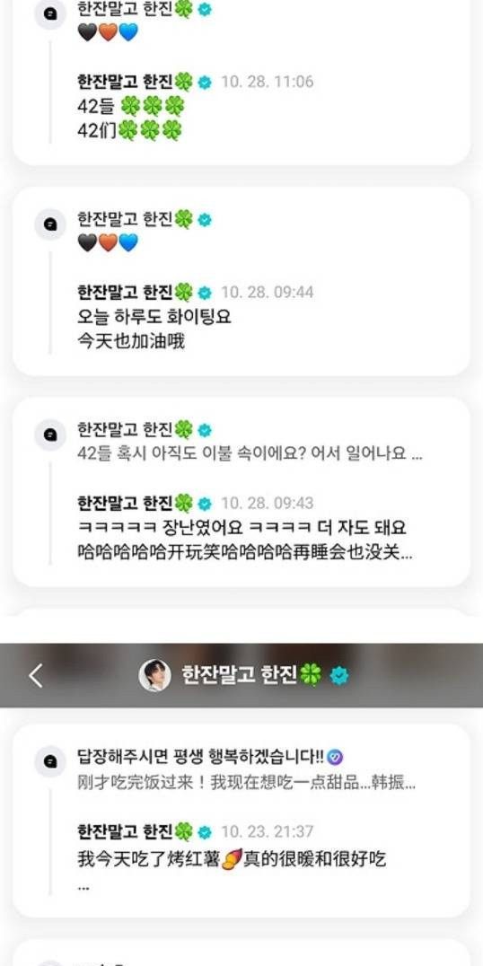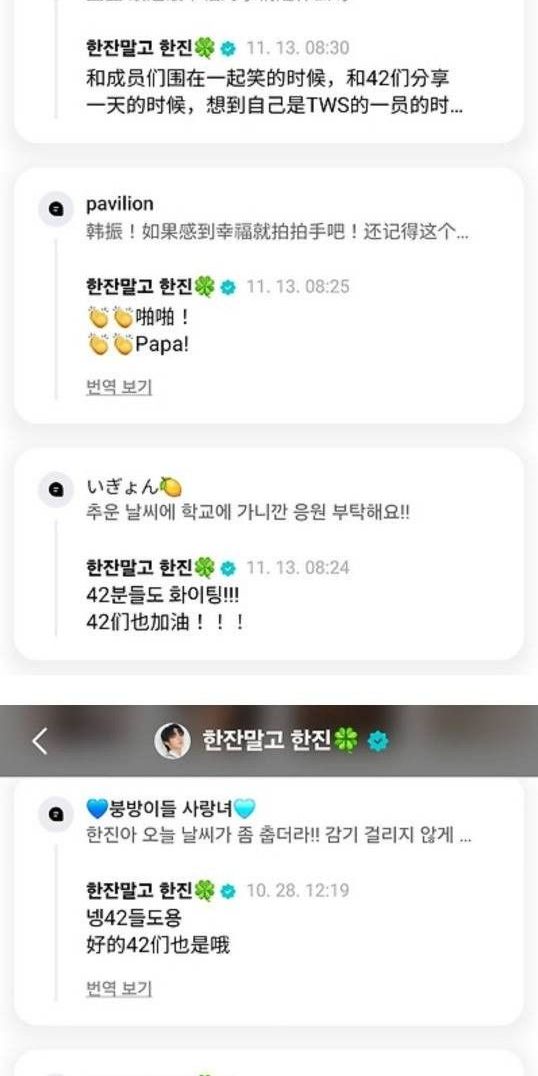 위버스는 번역기 기능이 자동 탑재되어있어서 저럴 필요가 없는데도 무조건 중국어를 씀