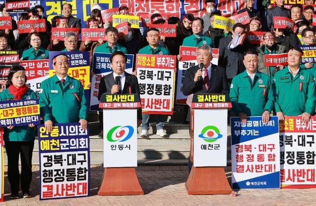 한편, 안동시에서는 지난 8일 대구·경북 행정통합 반대 궐기대회가 열렸고, 예천군에서도 15일 주민설명회를 통해 반대 의견을 표명하고, 통합 반대 추진위원회를 결성하는 등 주민들의 반발이 계속 이어지고 있다.