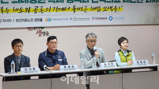 아울러 이들은 의료개혁을 위한 국민적 동참을 호소했다. 최희선 보건의료노조 위원장은 “의정 갈등이 협소한 구도를 넘어 건강과 생명의 주체인 환자, 국민들로 주체가 향해야 한다”며 “국민중심 의료개혁이 될 수 있도록 국민들이 적극적으로 관심을 가져주길 바란다”고 전했다.