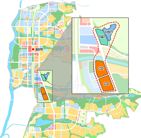 통합 개발을 위하여 공모 대상은 화성동탄2 의료시설용지(의료1), 도시지원시설용지(지원77), 주상복합용지(C32, C33) 총 4개 블록(19만㎡ 규모)이 하나의 공모 단위로 공급된다.