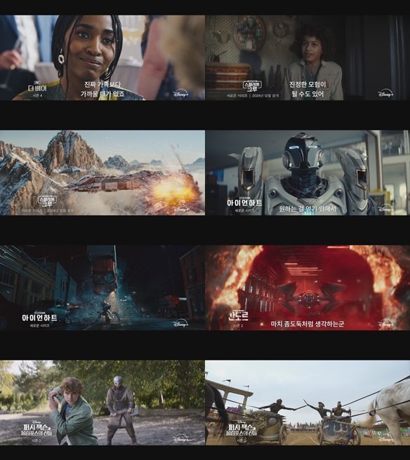 이번에 공개된 영상에서는 전 세계를 열광하게 한 명작 시리즈 '더 베어 시즌 4'와 '퍼시 잭슨과 올림포스의 신들 시즌2', 마블의 '아이언하트', '데어데블: 본 어게인', 스타워즈의 '스켈레톤 크루', '안도르: 스타워즈 스토리 시즌2' 그리고 '에이리언: 어스' 등 오직 디즈니+에서만 만나볼 수 있는 다채로운 콘텐츠들의 출격을 예고해 기대감을 증폭시킨다.