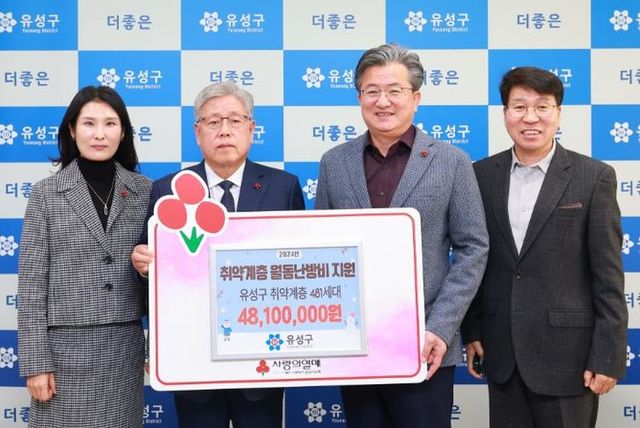 정용래 유성구청장은 “올겨울 강추위가 예상되는 가운데 이번 후원금이 저소득 가구의 생계에 조금이나마 보탬이 되길 바란다”며 “앞으로도 구민 모두가 따뜻하고 안전한 겨울을 보낼 수 있도록 다양한 지원 방안을 마련하겠다”고 말했다.