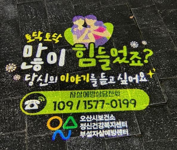 [와이뉴스] 오산시정신건강복지센터 부설 자살예방센터는 자살예방인식개선과 생명존중문화 확산을 위해 오산시 관내 아파트에 생명사랑 로고젝터를 설치했다.