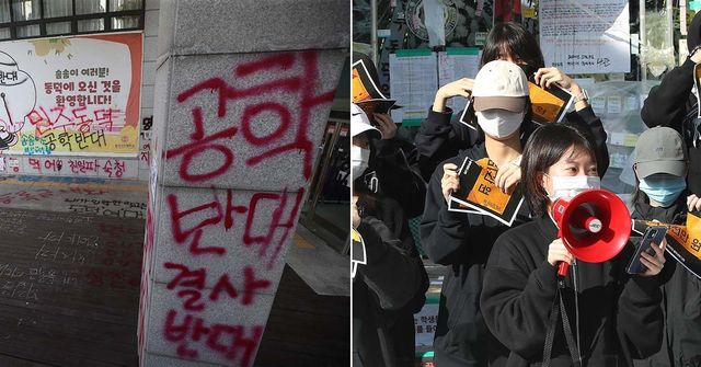 현재 동덕여대 학생들은 본관과 건물을 점거하고 남녀공학 전환에 반대하는 시위를 벌이고 있다.