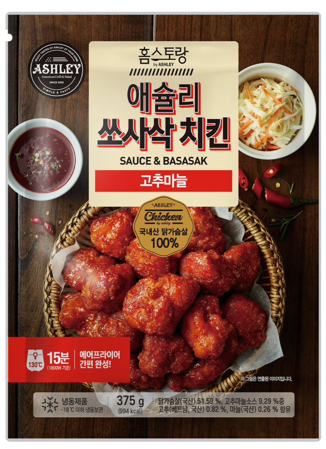 이랜드팜앤푸드의 가정간편식(HMR) 전문 브랜드 '홈스토랑'은 오는 20일 '애슐리 쏘사삭 치킨' 2종을 출시한다.