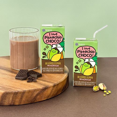 기획팩은 '연세우유 피스타치오 초코우유(190㎖)' 4개입으로 구성됐으며, 고소한 피스타치오 맛에 진한 초콜릿 풍미를 더한 가공유이다. 최근 두바이 초콜릿의 주 원료인 피스타치오에 대한 인기가 이어지자 연세유업은 소비자들의 니즈와 시장 트렌드를 반영해 제품을 선보였다.